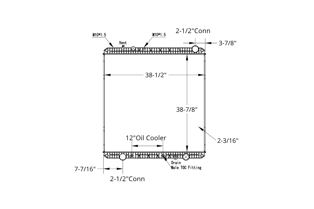 Aftermarket Freightliner Cascadia / Sterling rad comes with a 12" oil cooler.