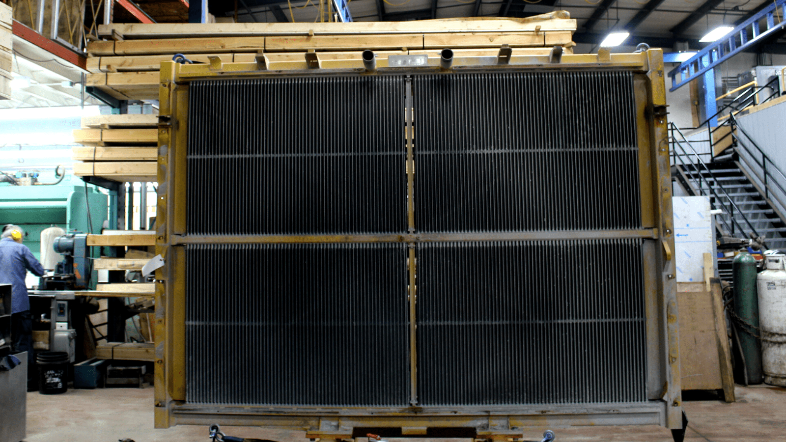 When it comes to a Mesabi rad repair, it typically becomes an “all hands on deck” type of job in our shop. These are massive rads that require careful attention and care. We’re proud to have designed our shop to specially be able to maneuver rads of this size while providing a high quality and long-lasting repair job.